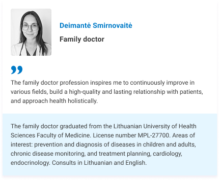 IMPORTANT: only expenses for remote family doctor consultations are reimbursed where, at the doctor’s discretion, medicines may be prescribed (issuance or renewal of an e-prescription), referrals to other medical specialists are issued upon return to Lithuania, or referrals or recommendations for diagnostic tests are provided, if such tests are necessary based on existing medical indications.
